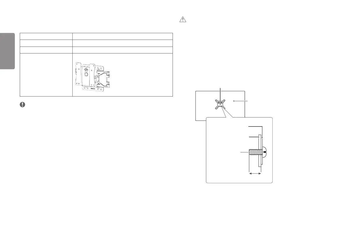 • The length of the screw may differ for each wall mounting bracket. If you use screws longer than the standard