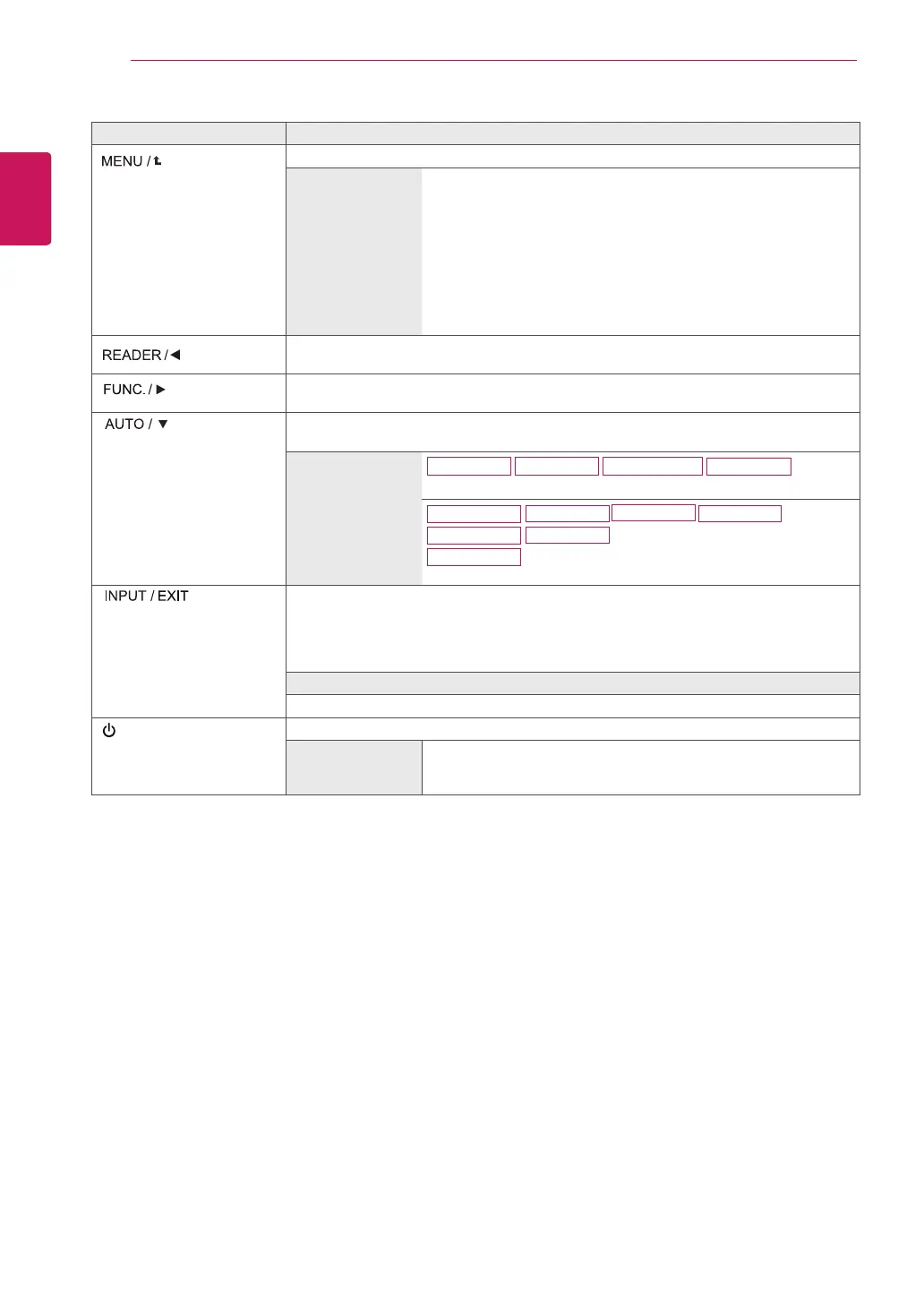 Use this button to enter Reader Mode menu. Its function works to display screen as