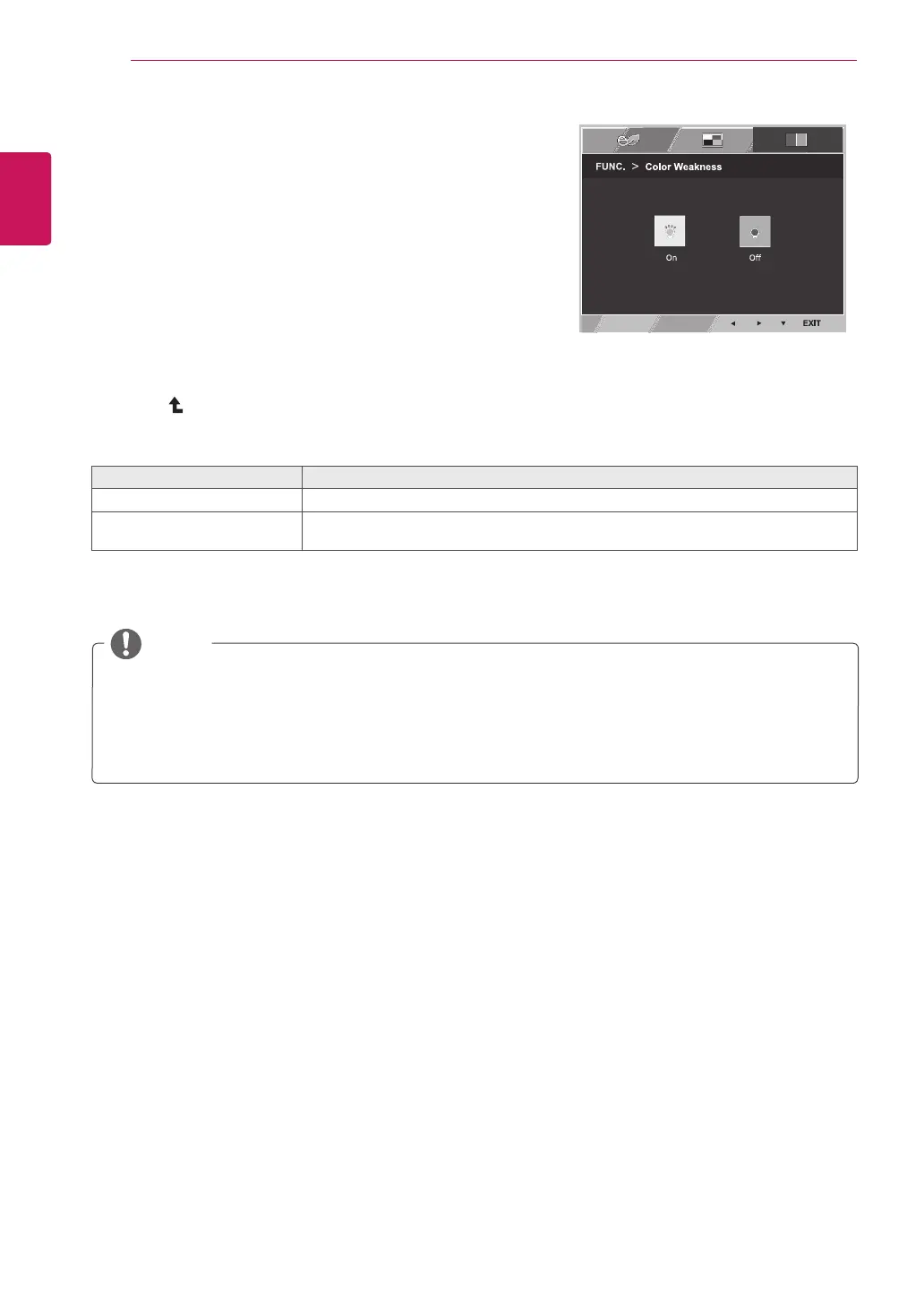 On This mode is for users who cannot distinguish between red and green. It enables