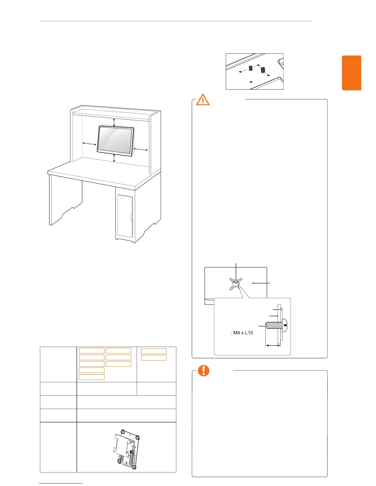 1 If you use screw longer than standard, the moni-