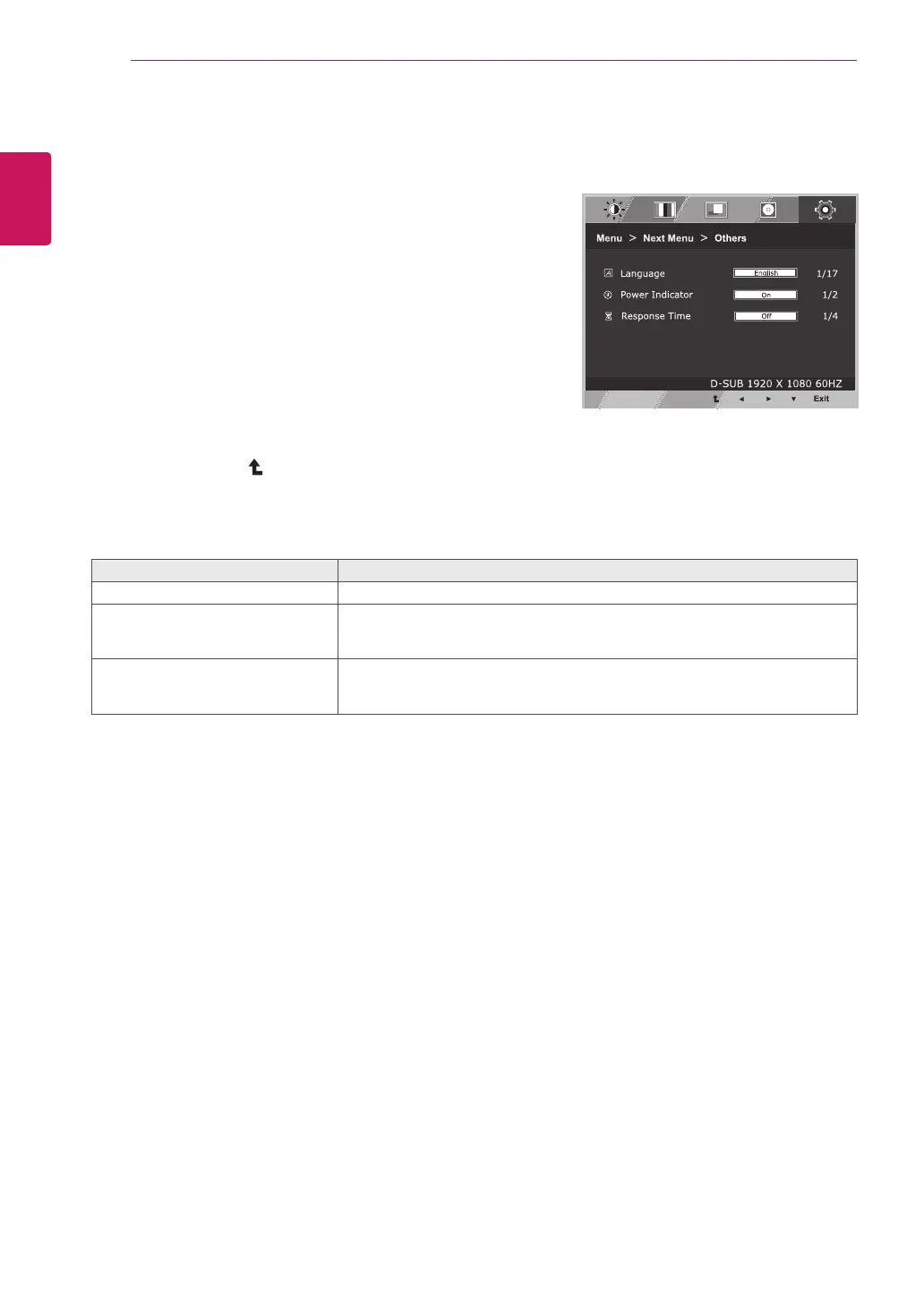 Power Indicator Use this function to set the power indicator on the bottom side of the monitor to