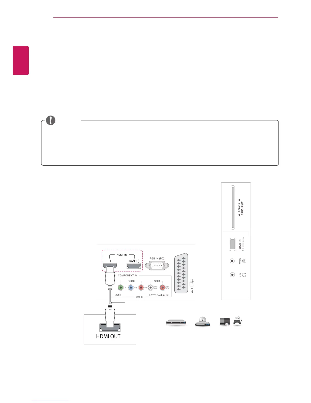 Transmits the digital video and audio signals from an external device to the TV. Connect the external device