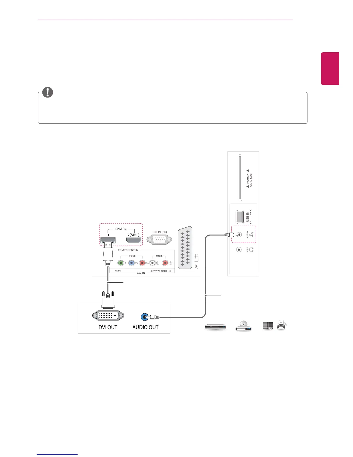 Transmits the digital video signal from an external device to the TV. Connect the external device and the TV