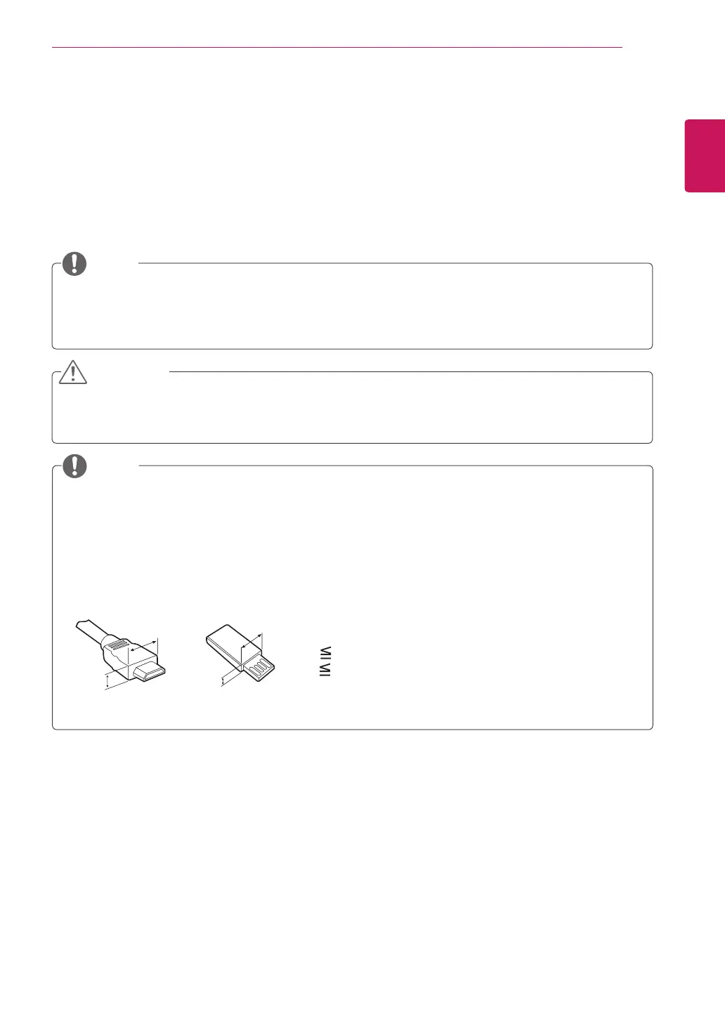 For an optimal connection, HDMI cables and USB devices should have bezels less than 10 mm thick