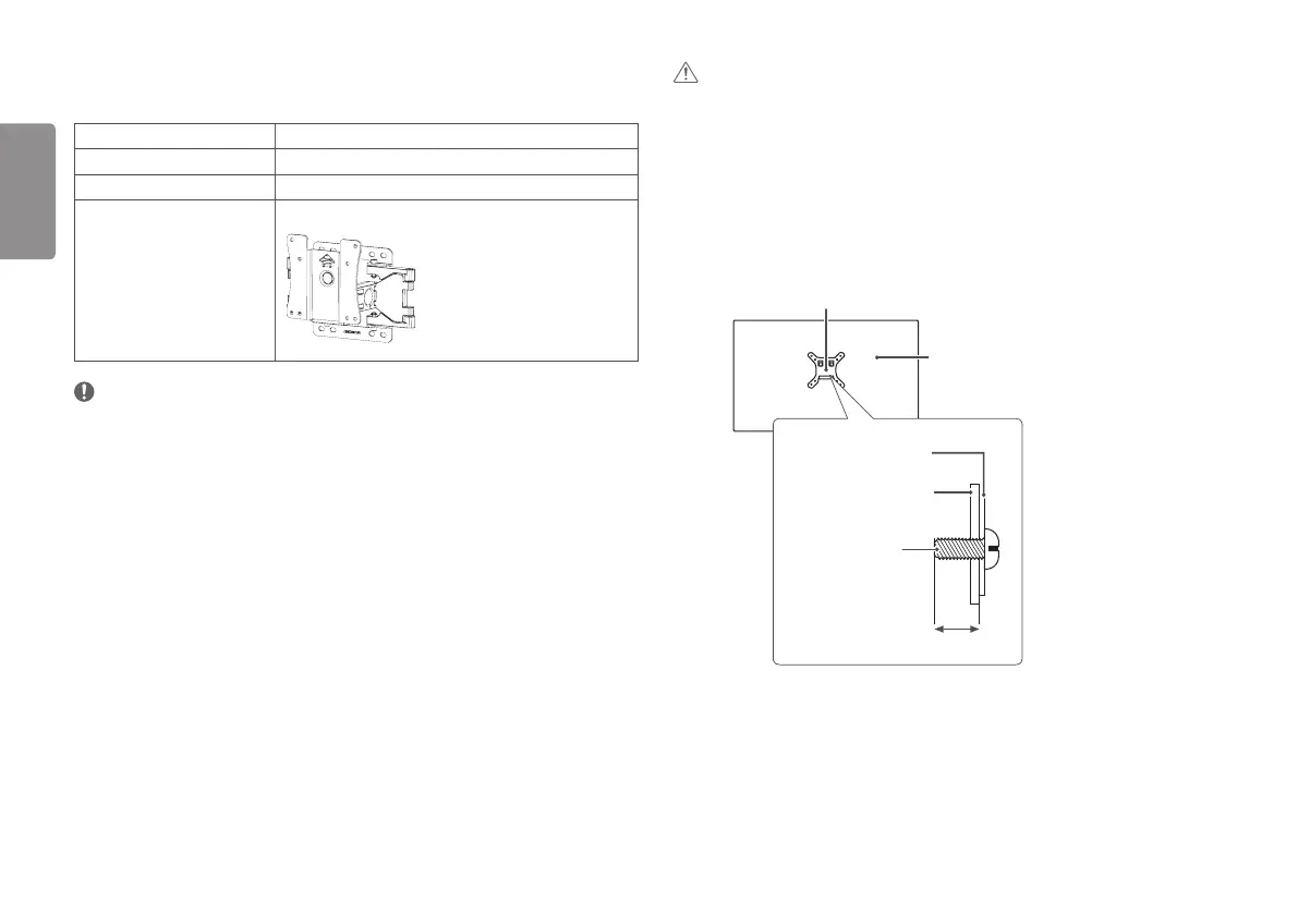 • The length of the screw may differ for each wall mounting bracket. If you use screws longer than the standard