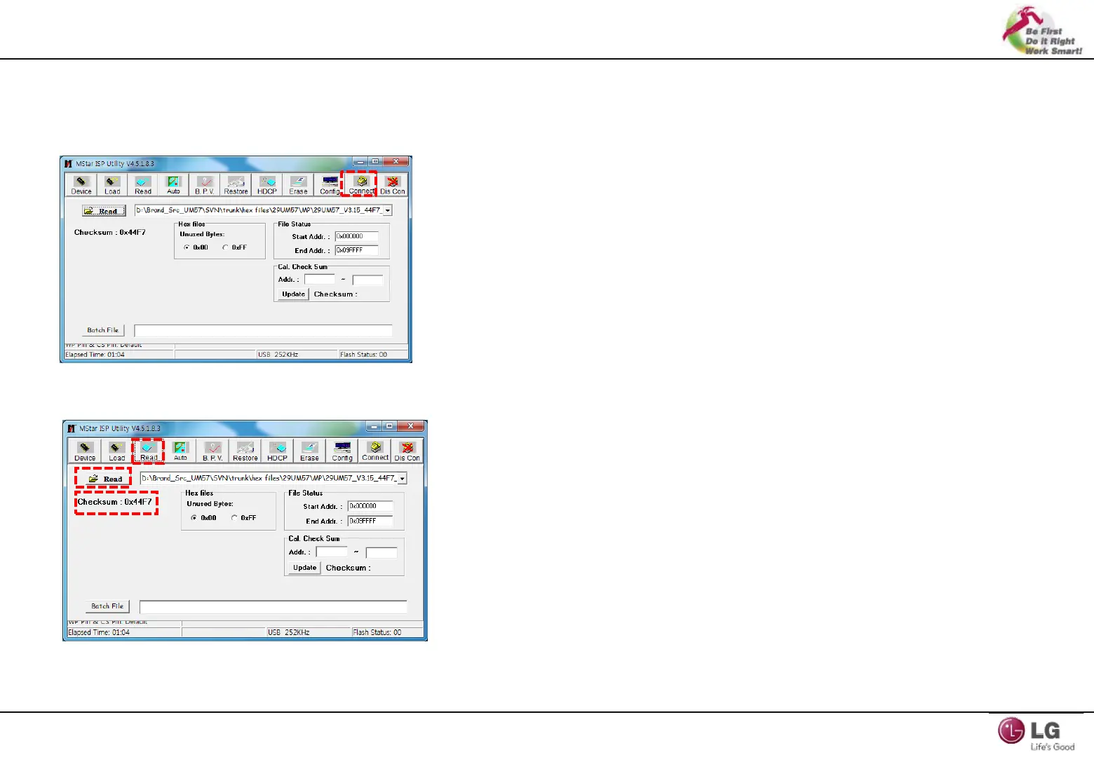2. Select “Read” button(1st) and find bin file(2nd) and then check the checksum value(3th).