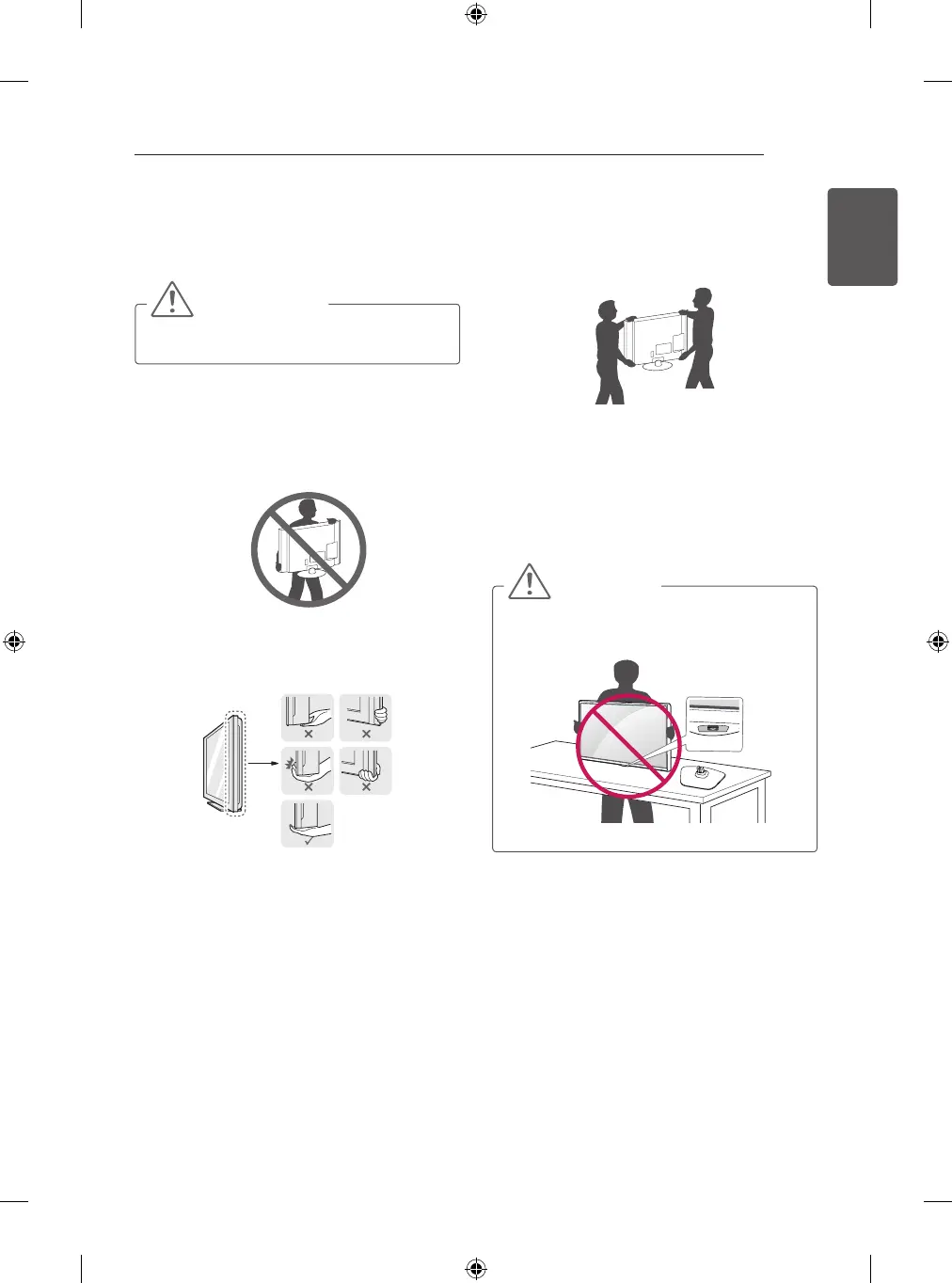 When holding the TV, the screen should face