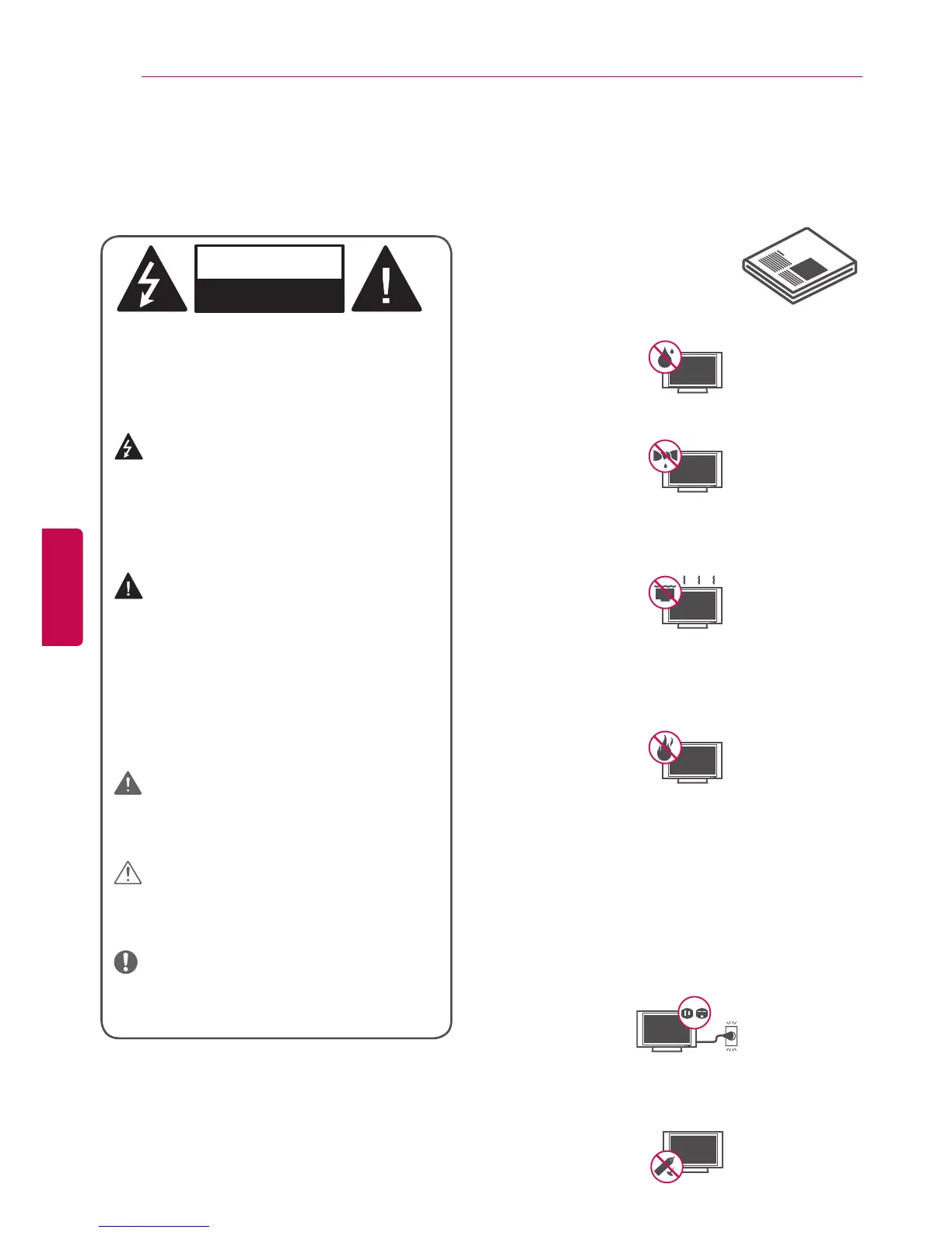 • Do not allow the television to become wet.