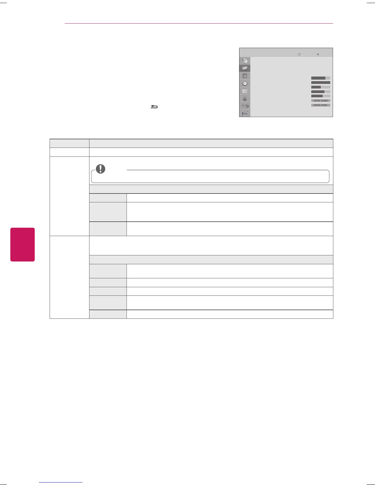 Picture Mode Selects one of the preset image or customizes options in each mode for the best TV screen performance. You are