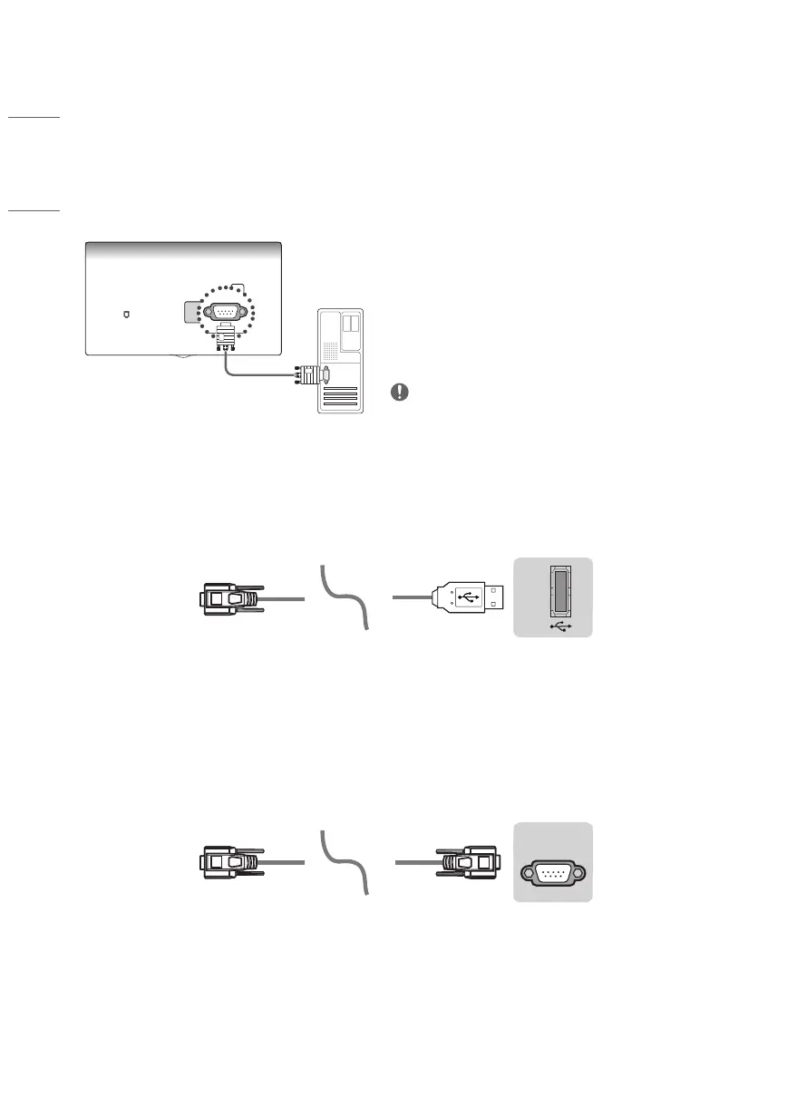 • You need to purchase the RS-232C (DE9, D-Sub 9 pin female-to-female type) to RS-232C cable required for the