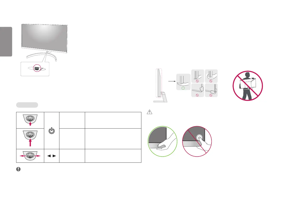 • If you use the monitor panel without the stand base, its joystick button may cause the monitor to become