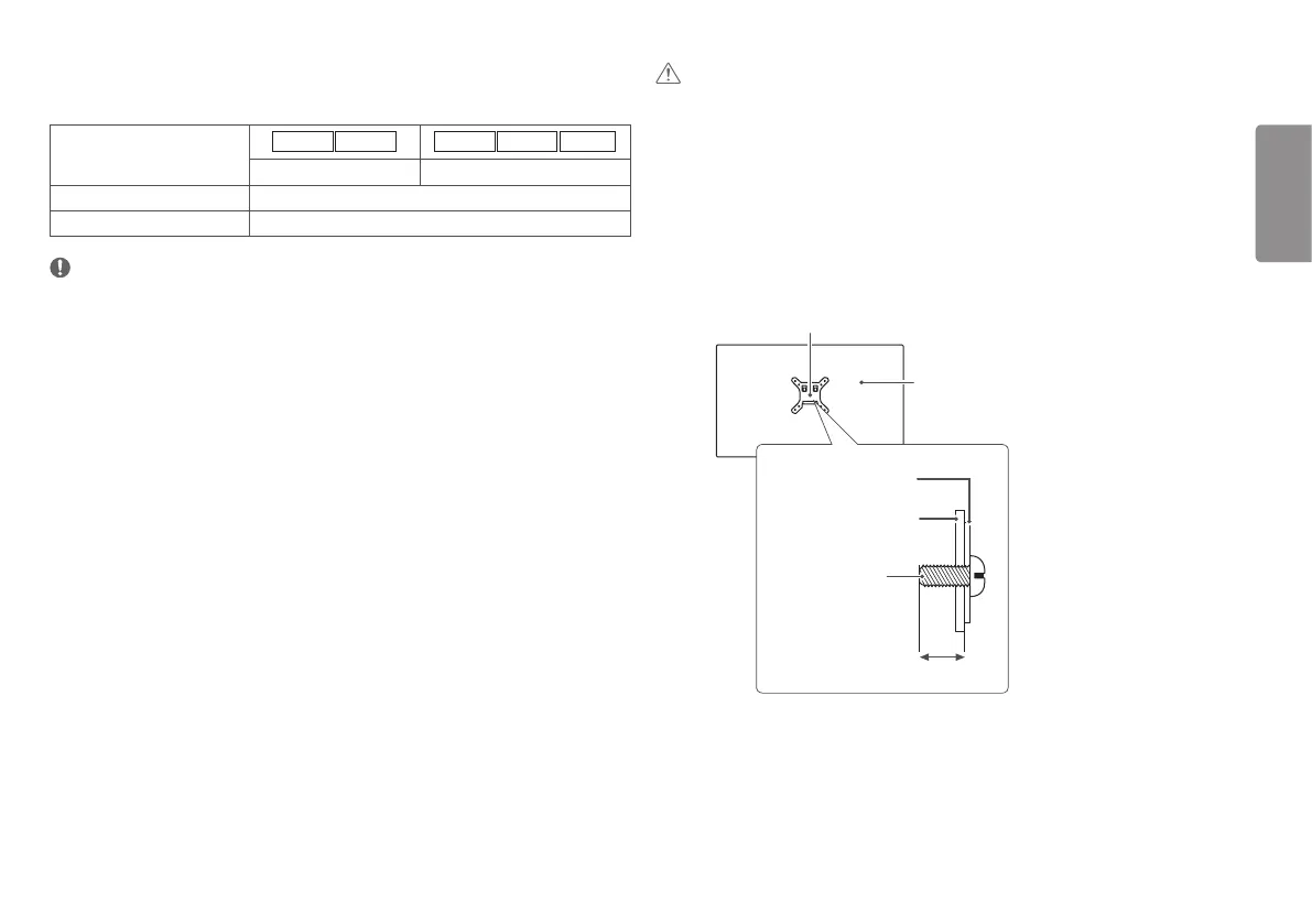 • When measured from the back of the monitor, the length of each installed screw must be 8 mm(0.3 inches)