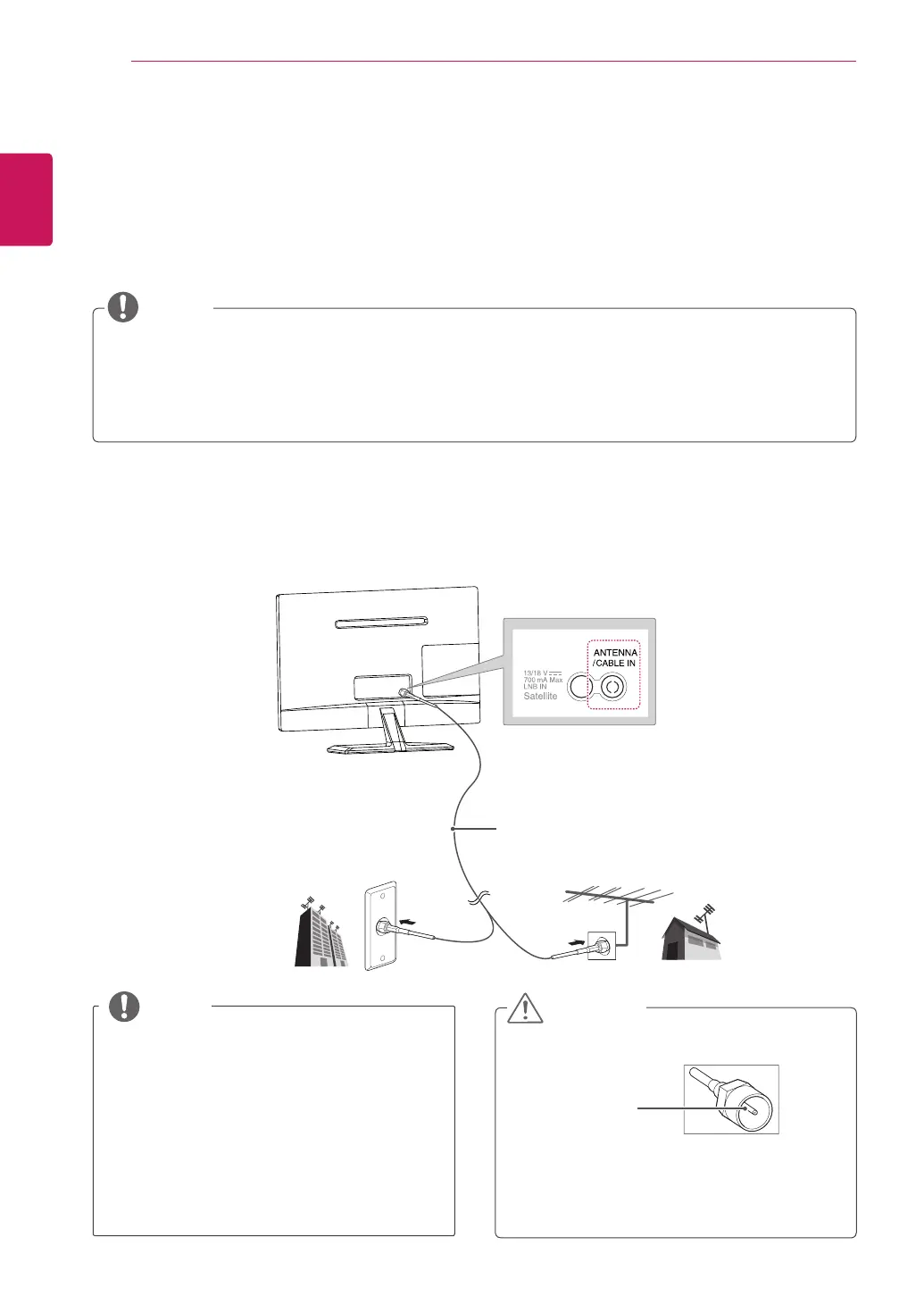 Connect the TV to a wall antenna socket with an RF cable (75Ω).
