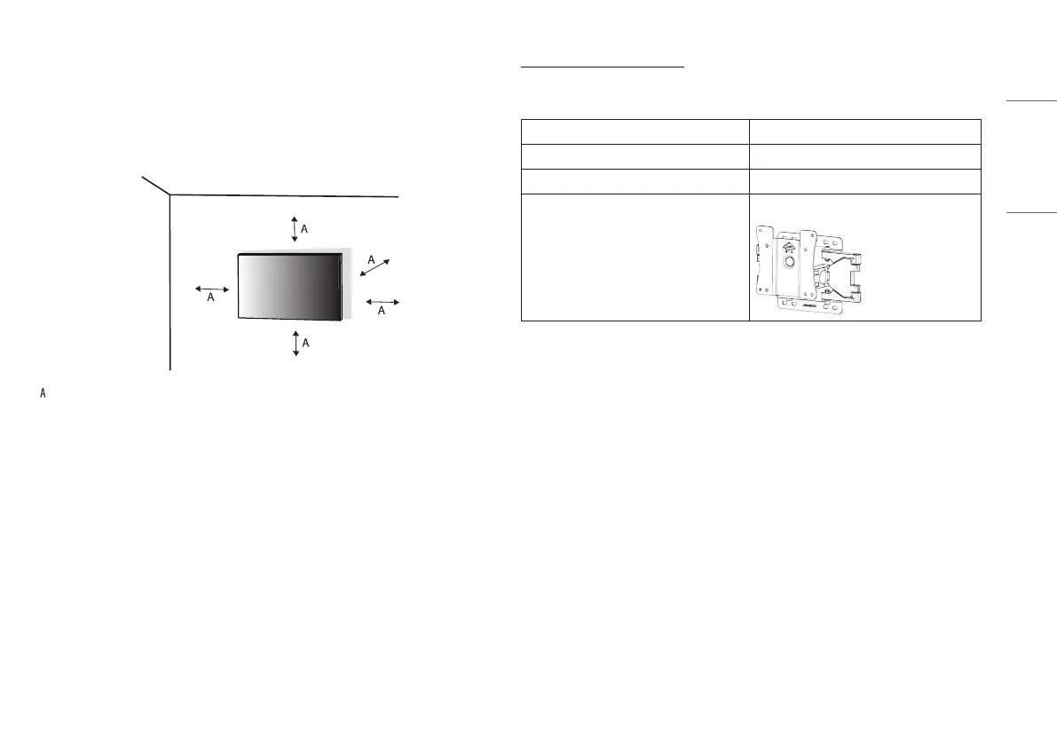 Install the monitor at least 100mm (3.9inches) away from the wall and leave about 100mm (3.9inches)