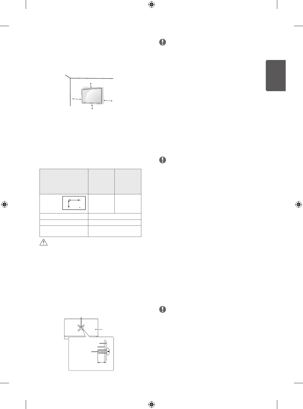 • Use the screws and wall mounts that meet the VESA standard. Any