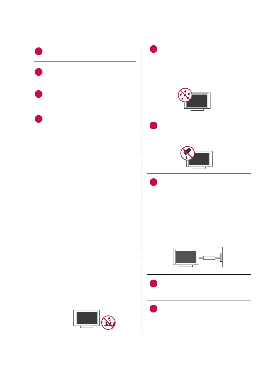 moisture or other liquids. Do not touch the TV