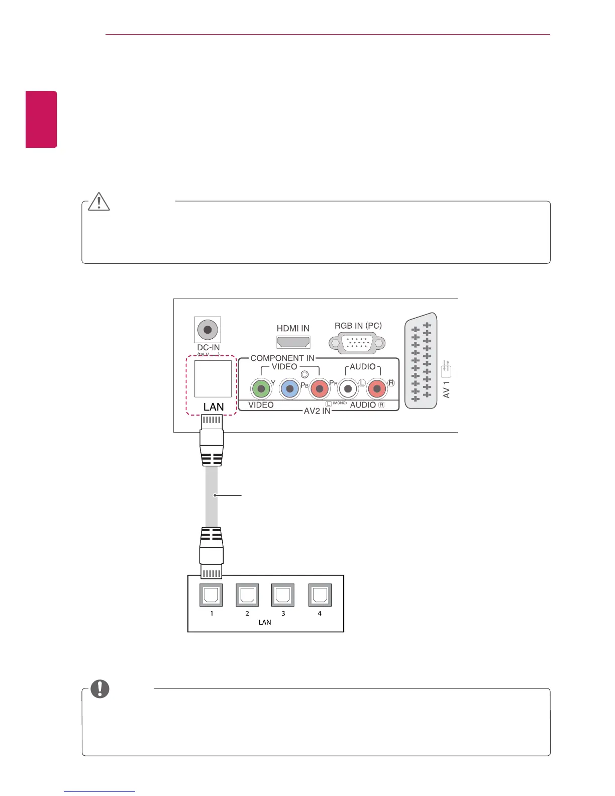 Connect the TV to a local area network (LAN) via the LAN port as shown on the following illustration