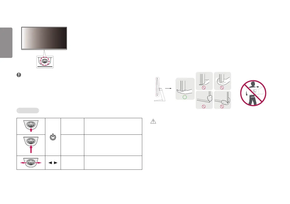 • If you use the monitor panel without the stand base, its joystick button may cause the monitor to become