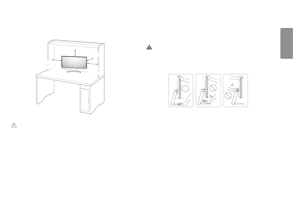• To avoid injury to the fingers when adjusting the screen, do not hold the lower part of the monitor’s frame as