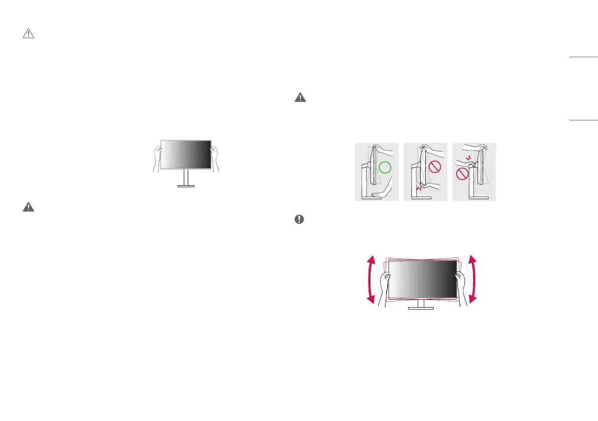 • To avoid injury to the fingers when adjusting the screen, do not hold the lower part of the monitor’s frame as