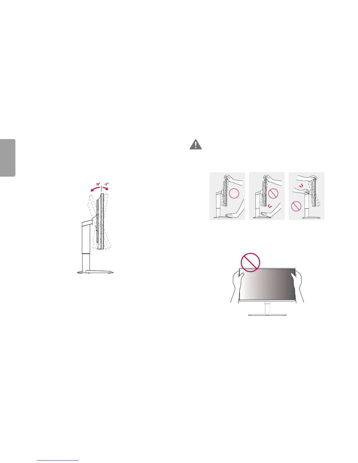 • Be careful not to touch or press the screen area when adjusting the angle of the