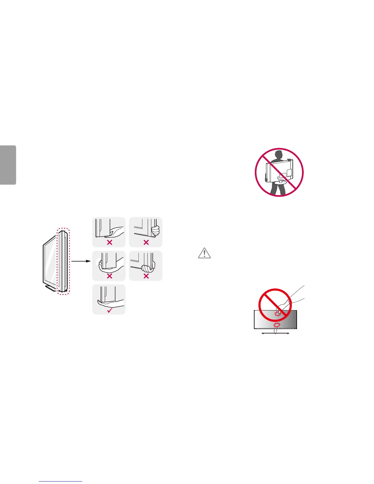 • Hold the bottom and side of the monitor frame firmly. Do not hold the panel itself.