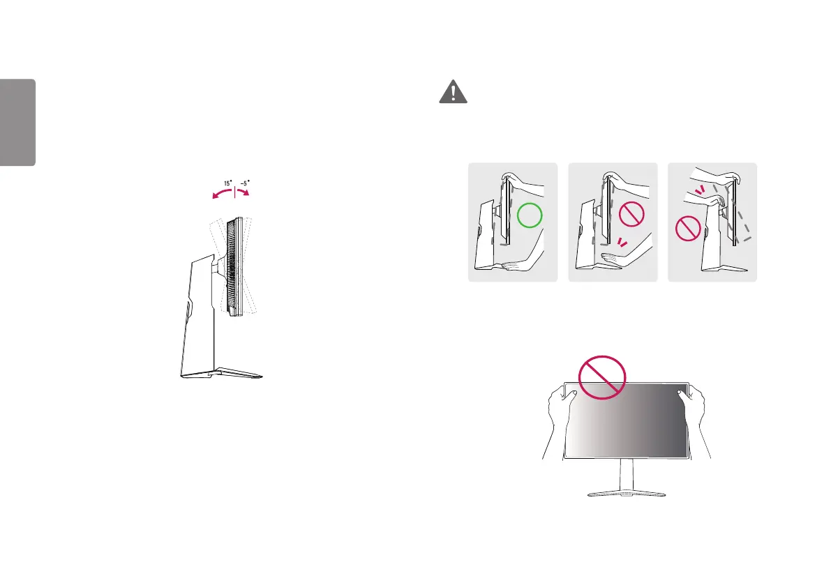 • Be careful not to touch or press the screen area when adjusting the angle of the