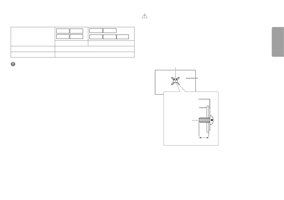 • When measured from the back of the monitor, the length of each installed screw must be 8 mm or less.