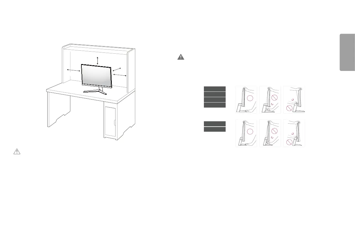 • Lift the monitor and place it on the table in an upright position. Place the monitor at least 100mm away from