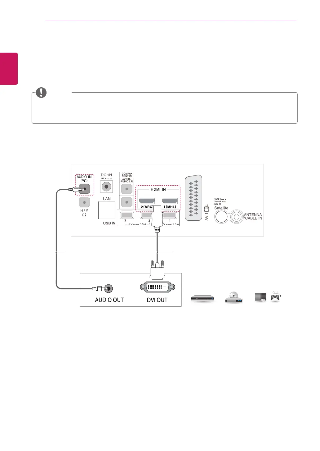 Transmits the digital video signal from an external device to the TV. Connect the external device and the TV