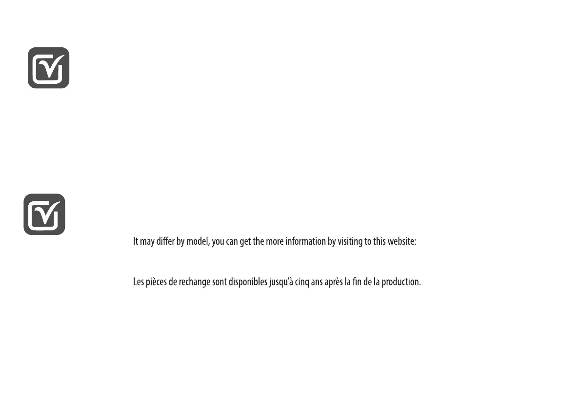Les pièces de rechange peuvent varier selon le modèle. Vous pouvez obtenir plus de renseignements en visitant le site Web