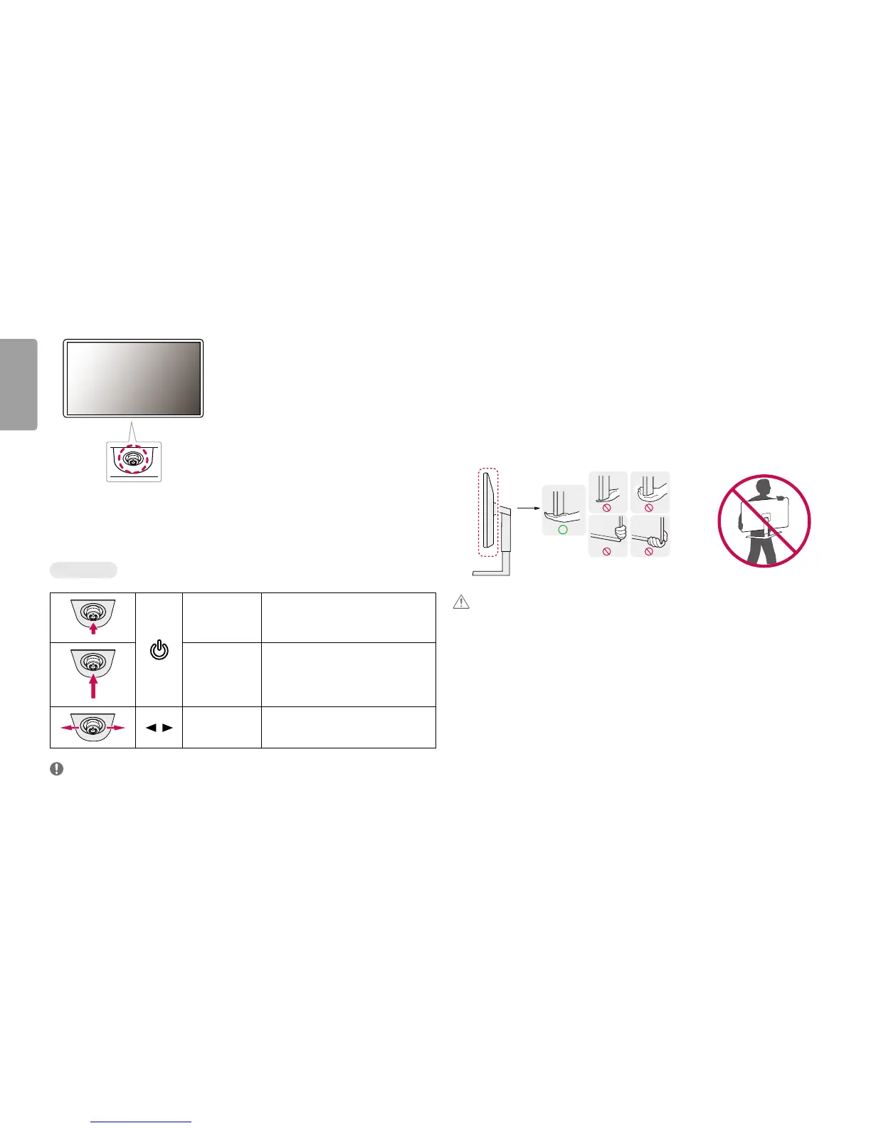 • If you use the monitor panel without the stand base, its joystick button may cause the monitor to become