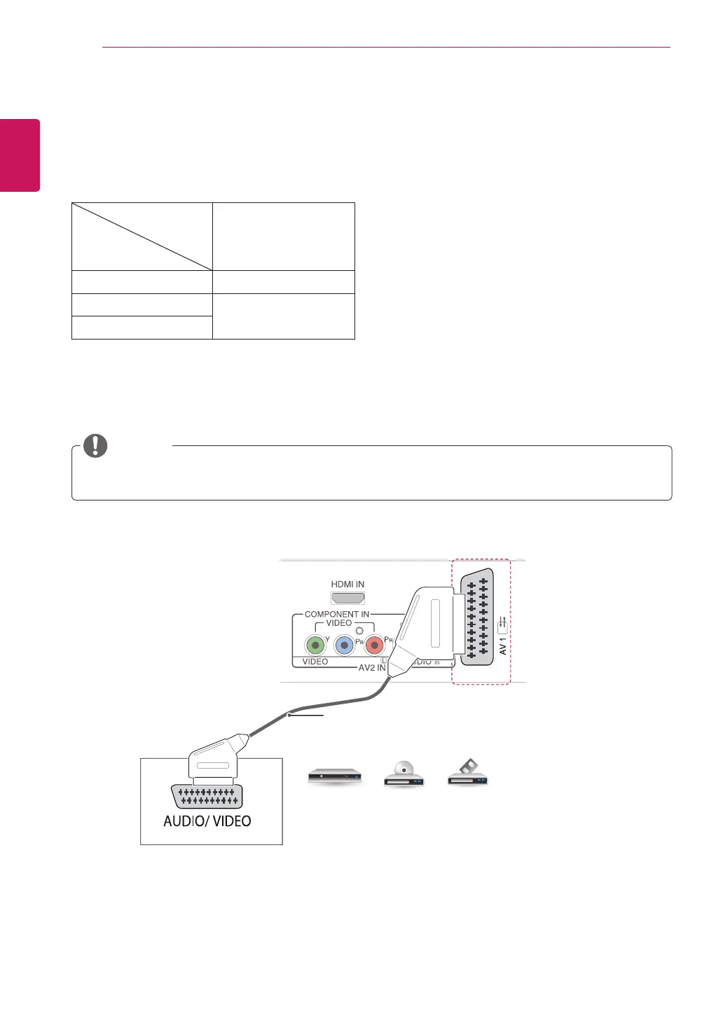 Transmits the video and audio signals from an external device to the TV. Connect the external device