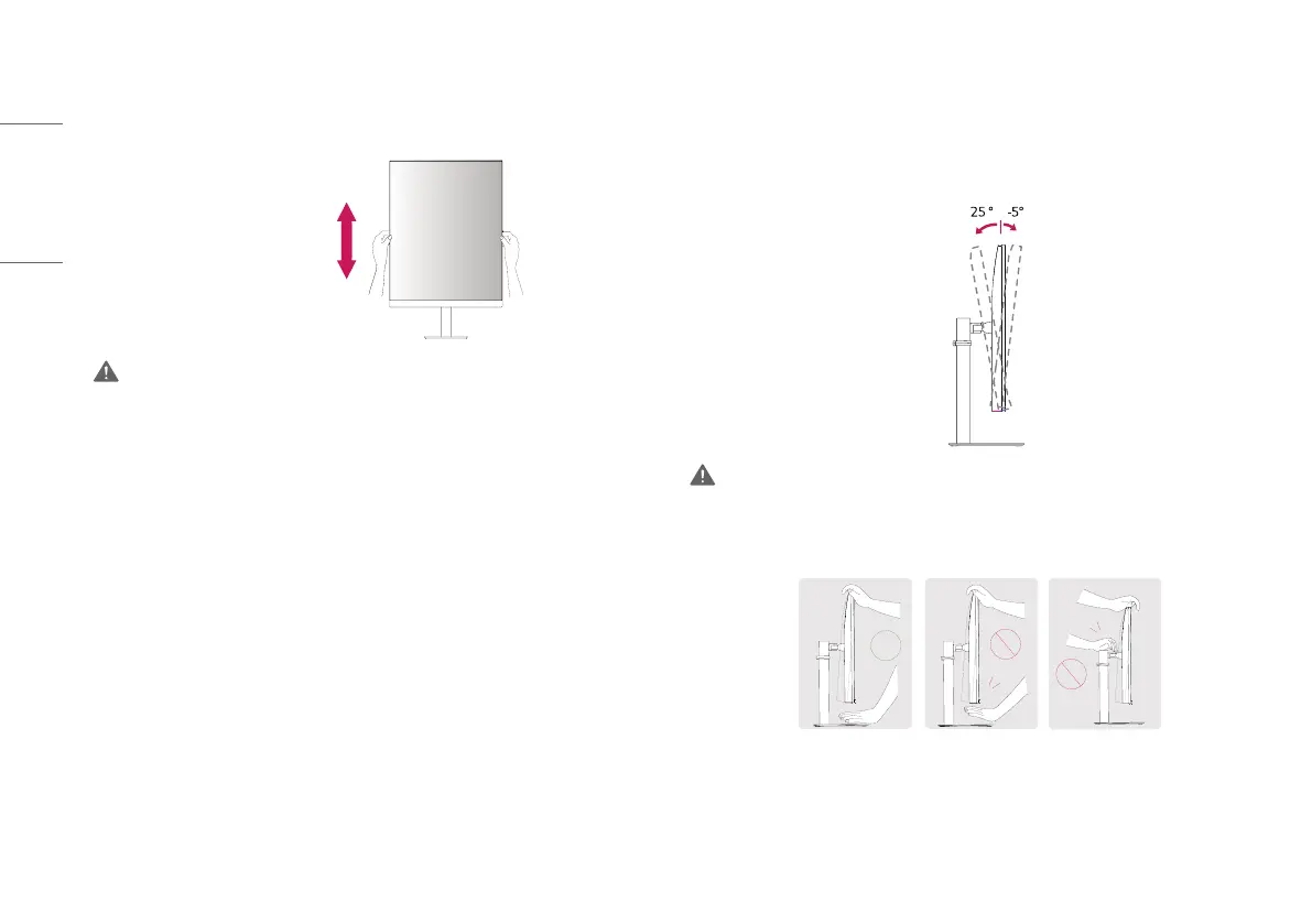• Be careful not to touch or press the screen area when adjusting the angle of the monitor.