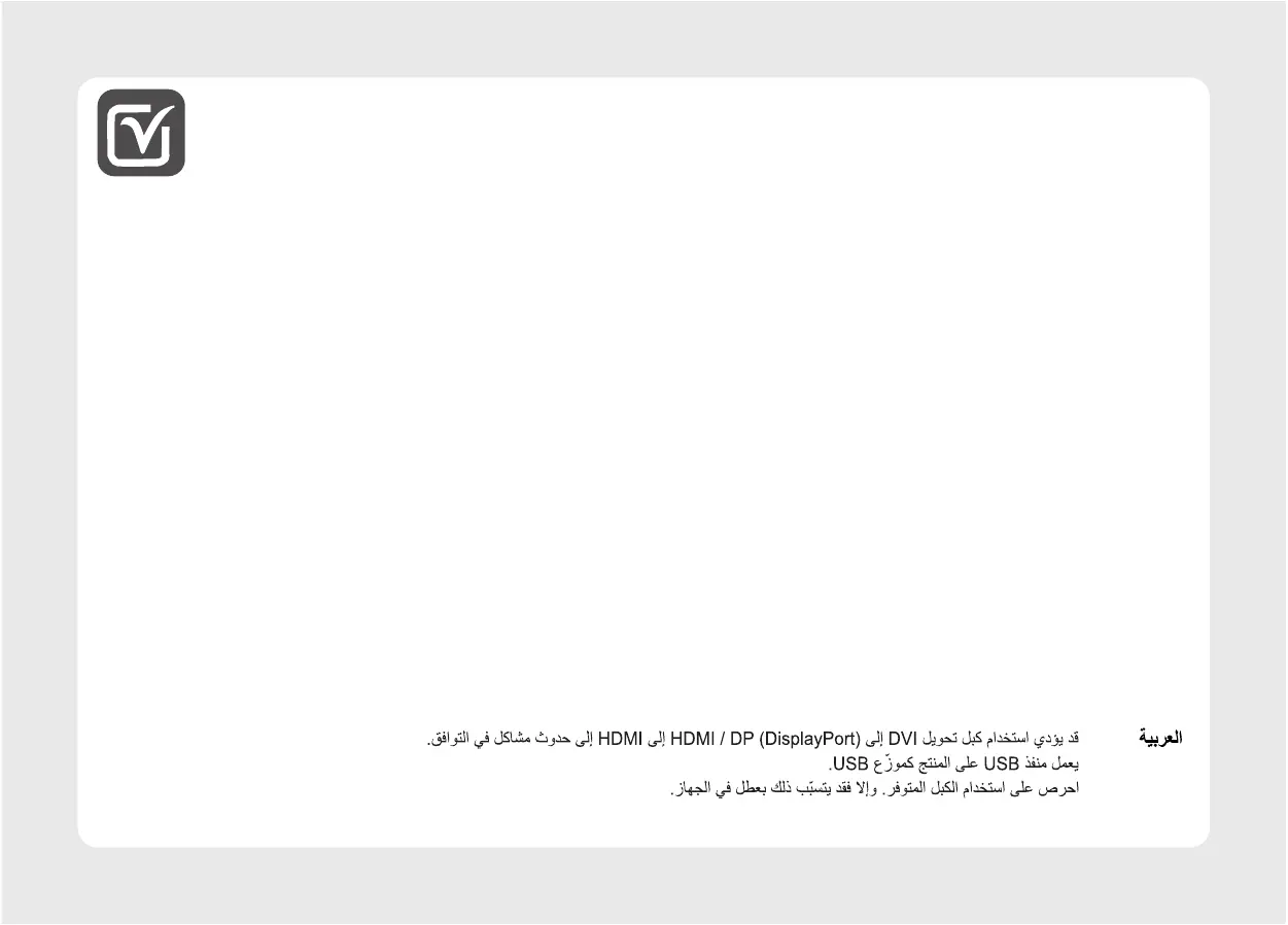 Tiếng Việt •Sử dụng cáp chuyển đổi tín hiệu từ DVI sang HDMI hoặc từ DP (DisplayPort) sang HDMI có thể gây ra các vấn đề không