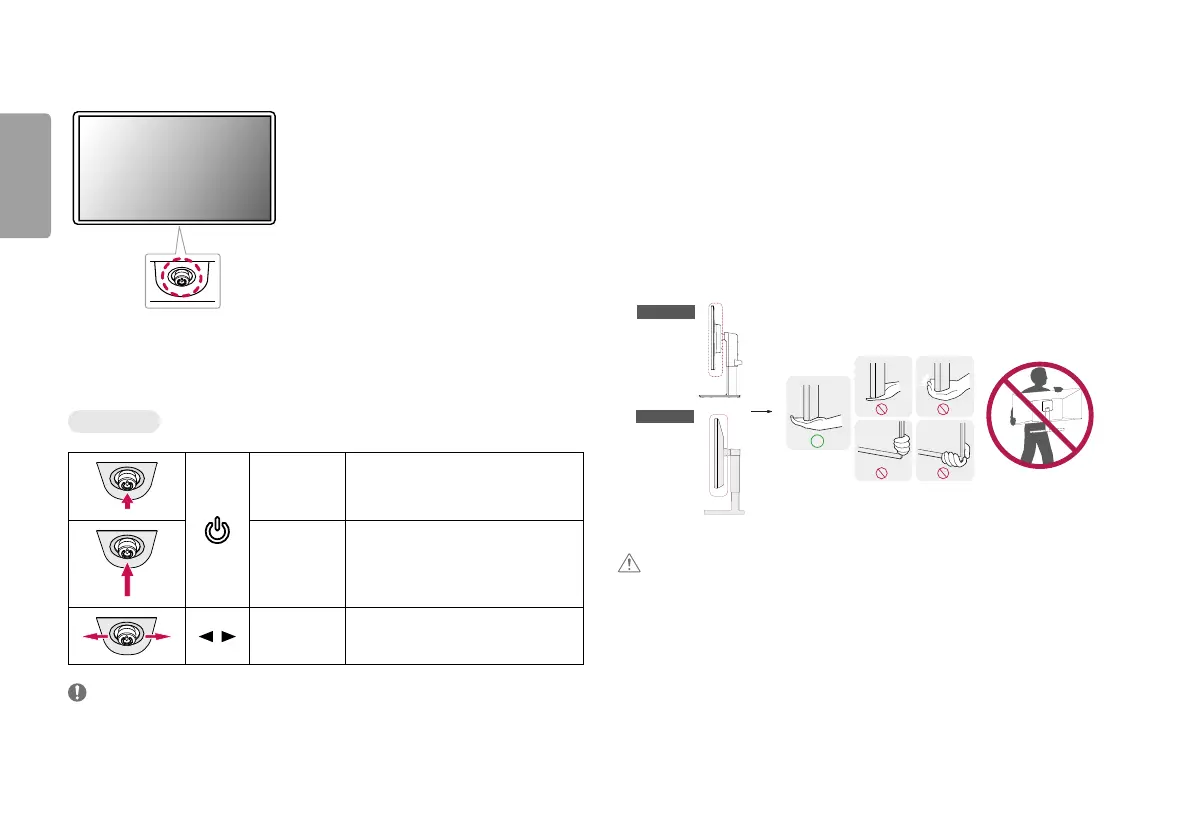 • If you use the monitor panel without the stand base, its joystick button may cause the monitor to become