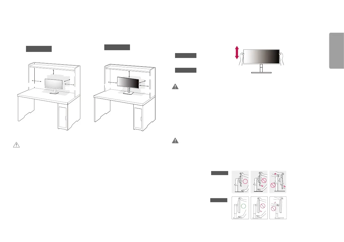 • To avoid injury to the fingers when adjusting the screen, do not hold the lower part of the monitor’s frame as