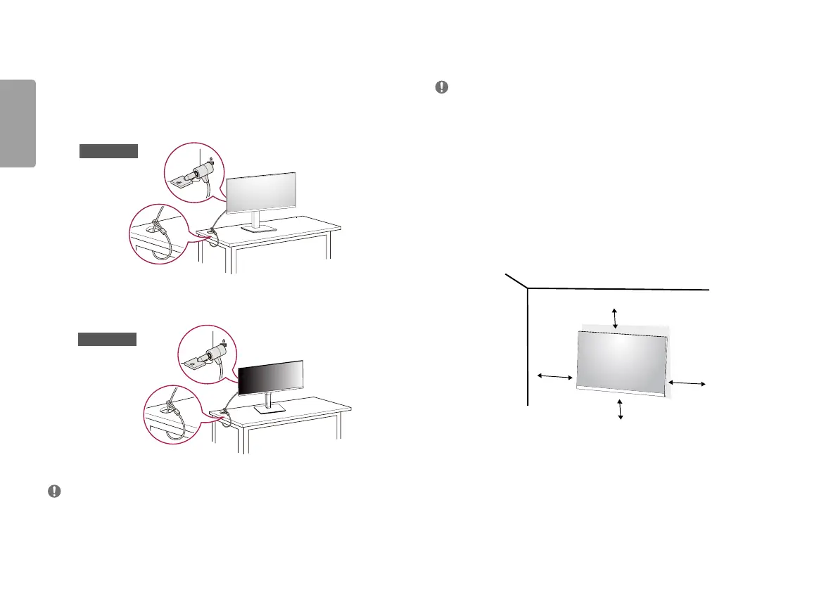 Install the monitor at least 100mm away from the wall and leave about 100mm of space at each side of the