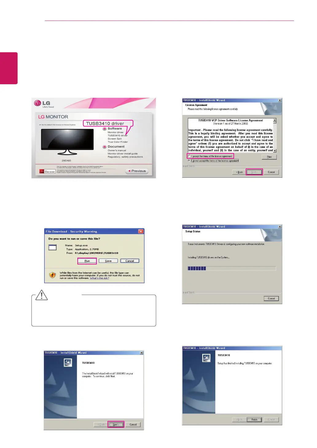 When the TUSB3410 driver installer starts, click