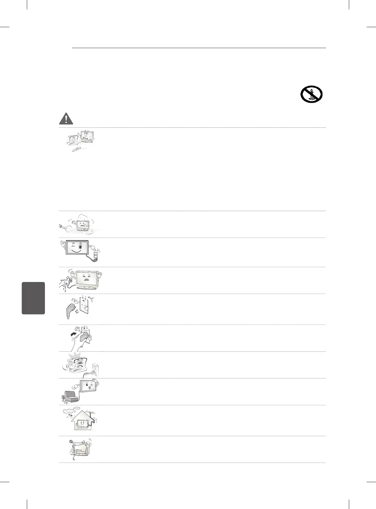 Plaats de TV en afstandsbediening niet in de volgende omgevingen: