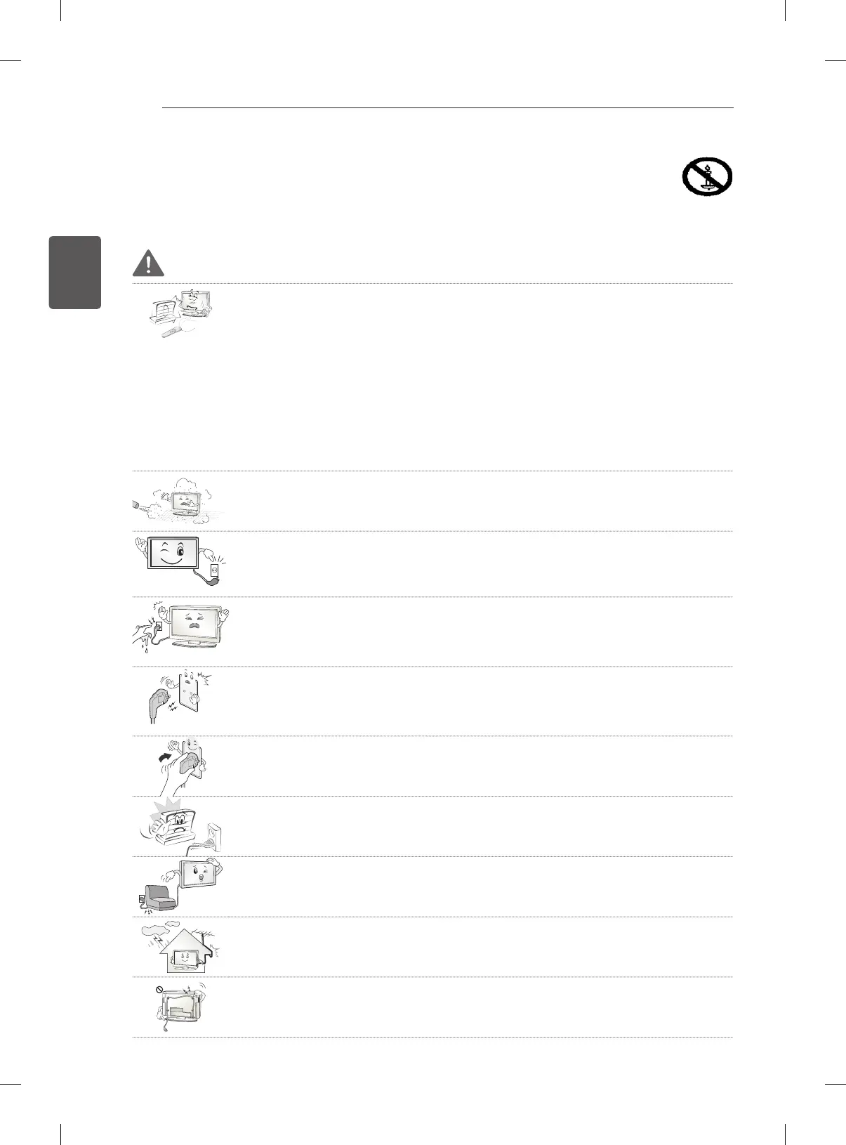 Stellen Sie das TV-Gerät mit Fernsteuerung nicht in folgenden Umgebungen auf: