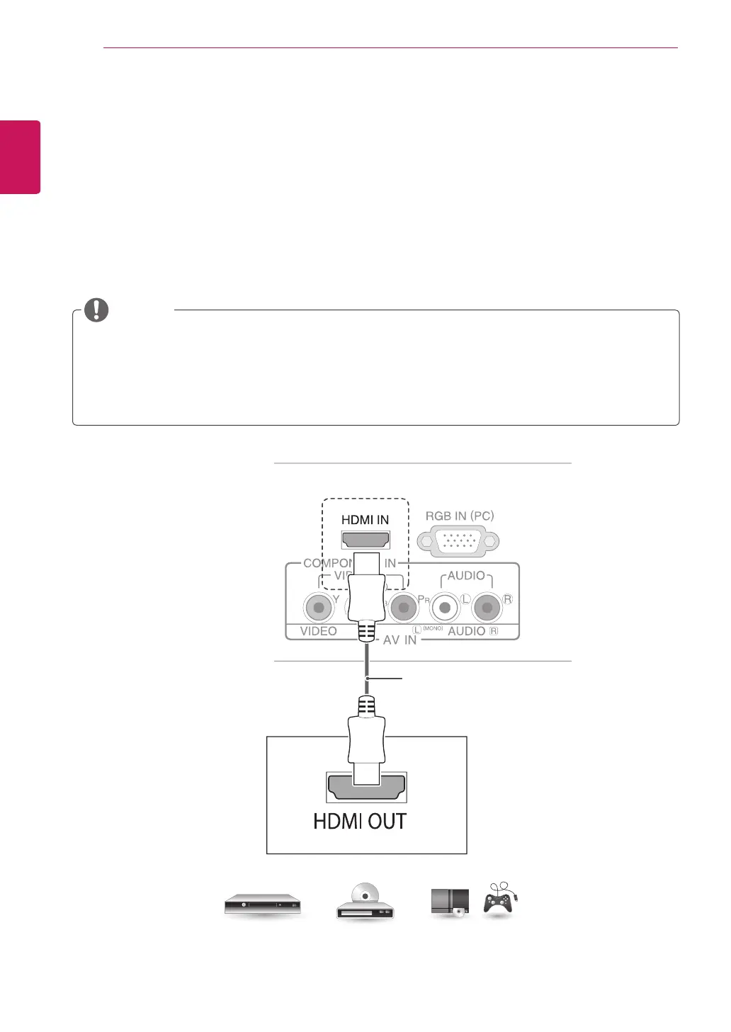 Transmits the digital video and audio signals from an external device to the TV. Connect the external device