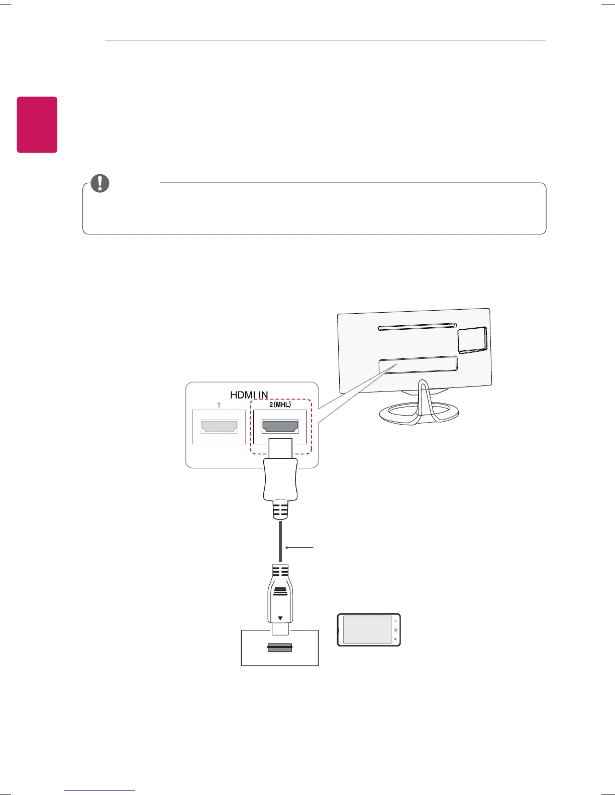HDMI2/MHL port of the monitor using the supplied MHL signal cable and switch the input by pressing the