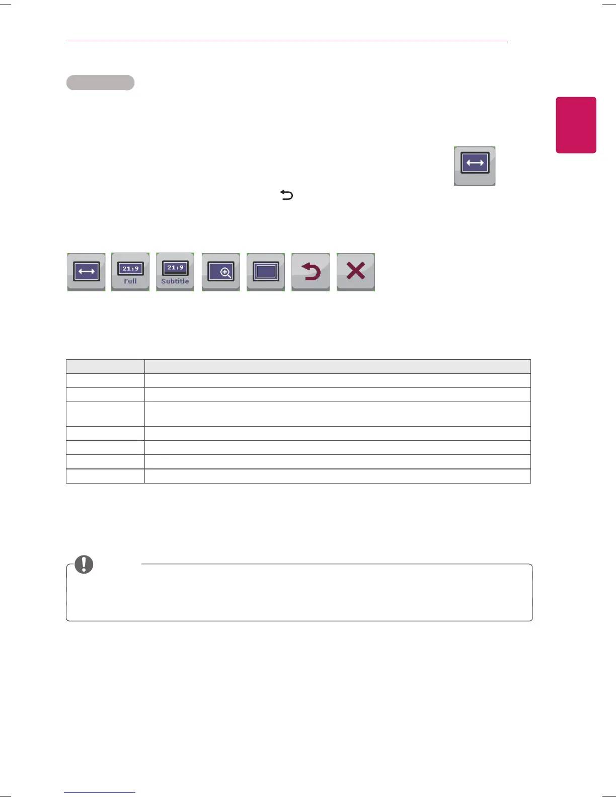 Cinema2 Enlarges the screen with an aspect ratio of 21:9 including the black box area at the bottom for