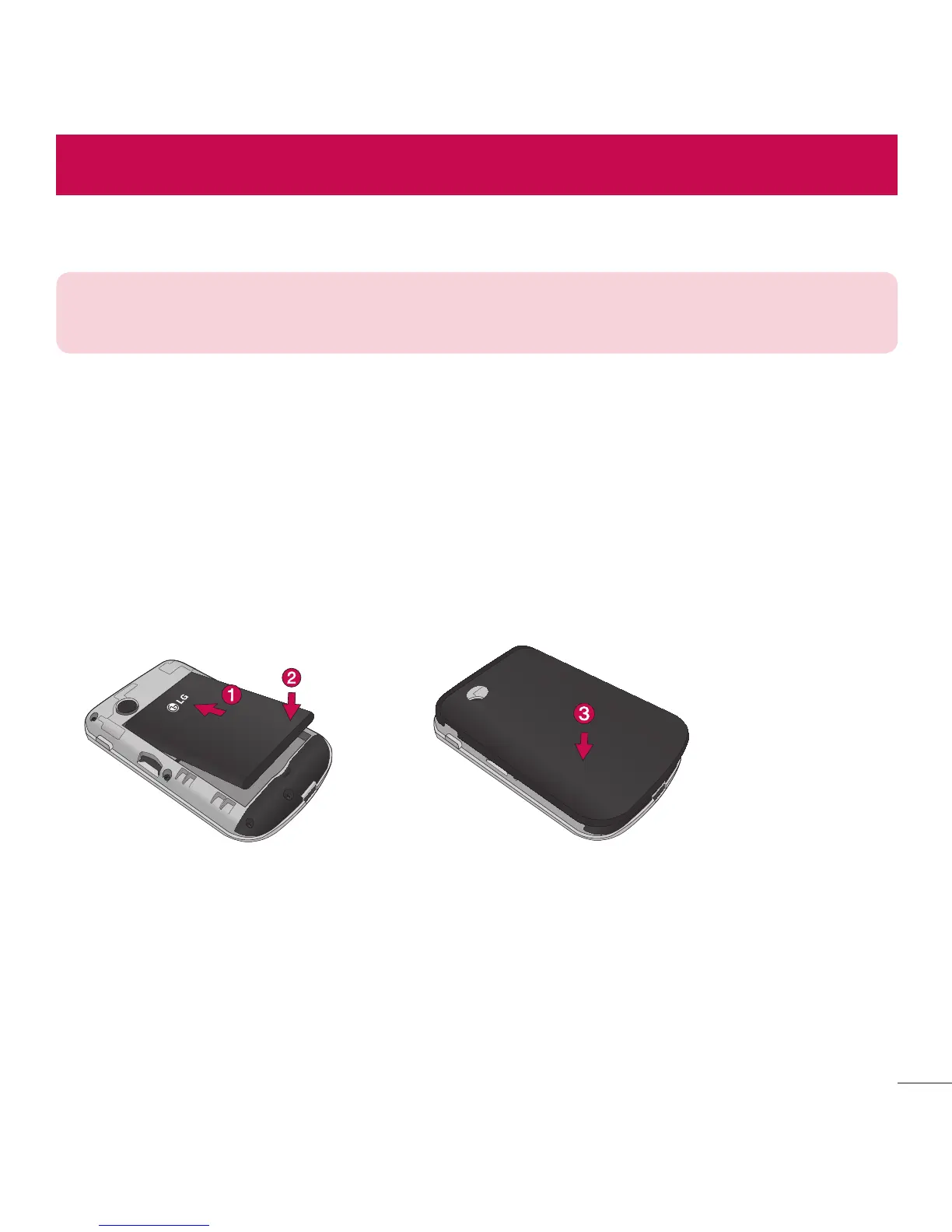 2 Insert the battery into the battery compartment in the back of the phone. Make