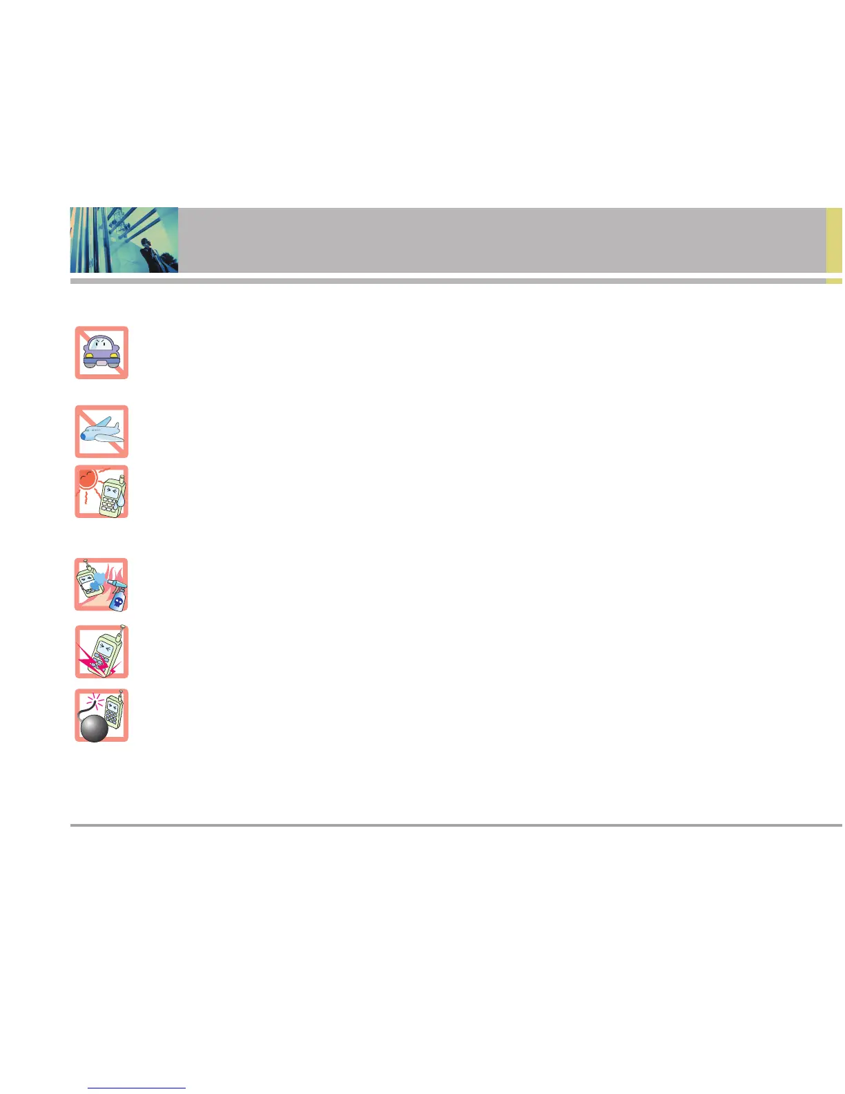 Do not use the phone in areas where its use is prohibited. (i.e.: aircraft, hospital).