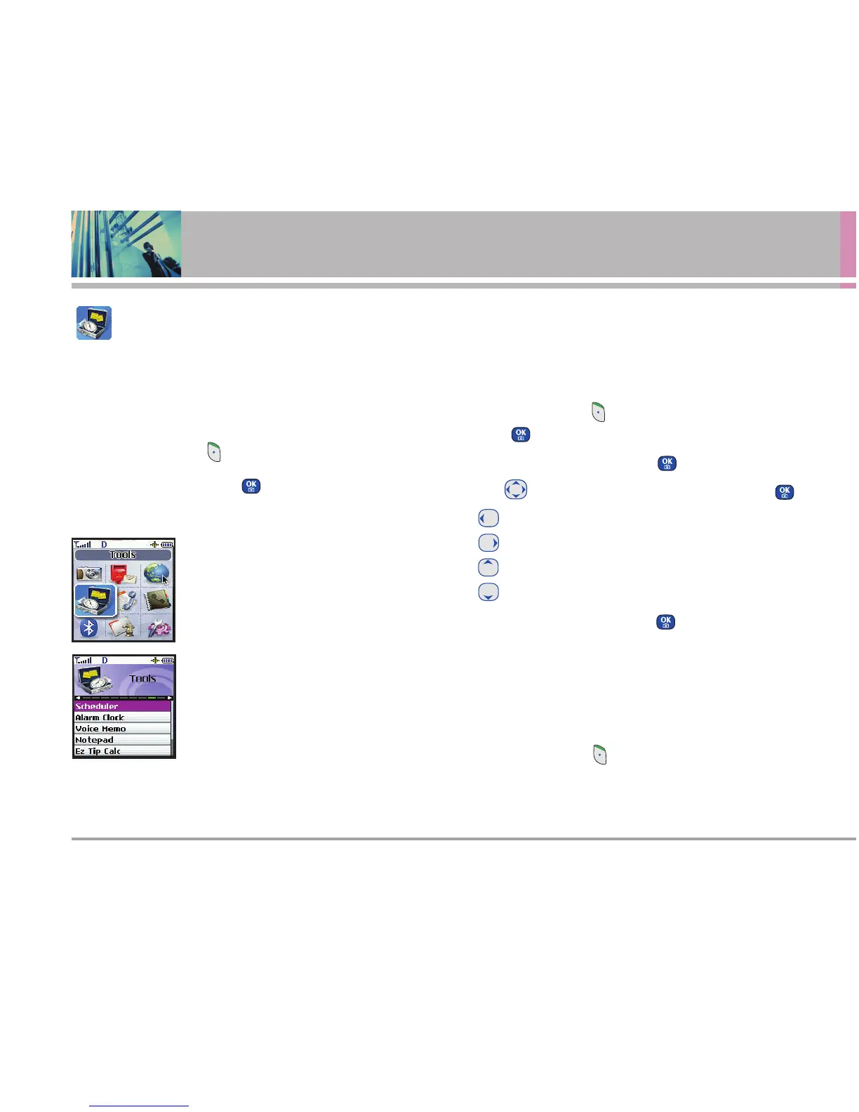 Your phone tools include a Scheduler, Alarm Clock, Voice