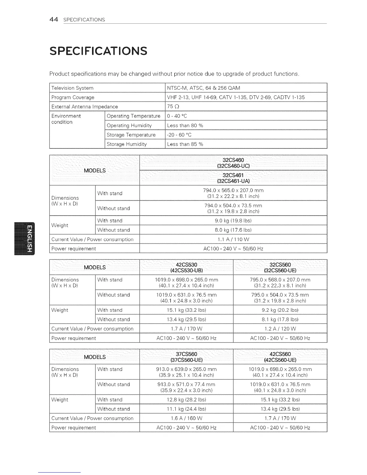 44 SPECIFICATIONS