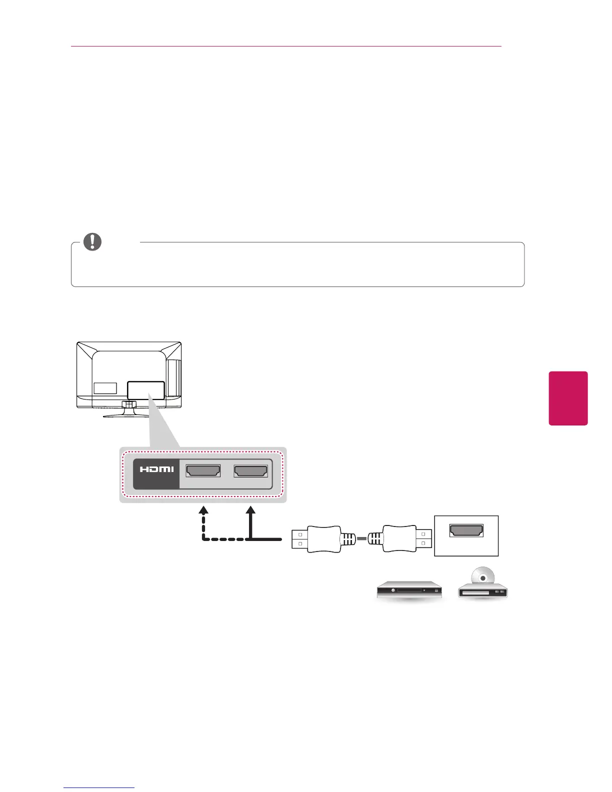 and the TV with the HDMI cable as shown in the following illustration.