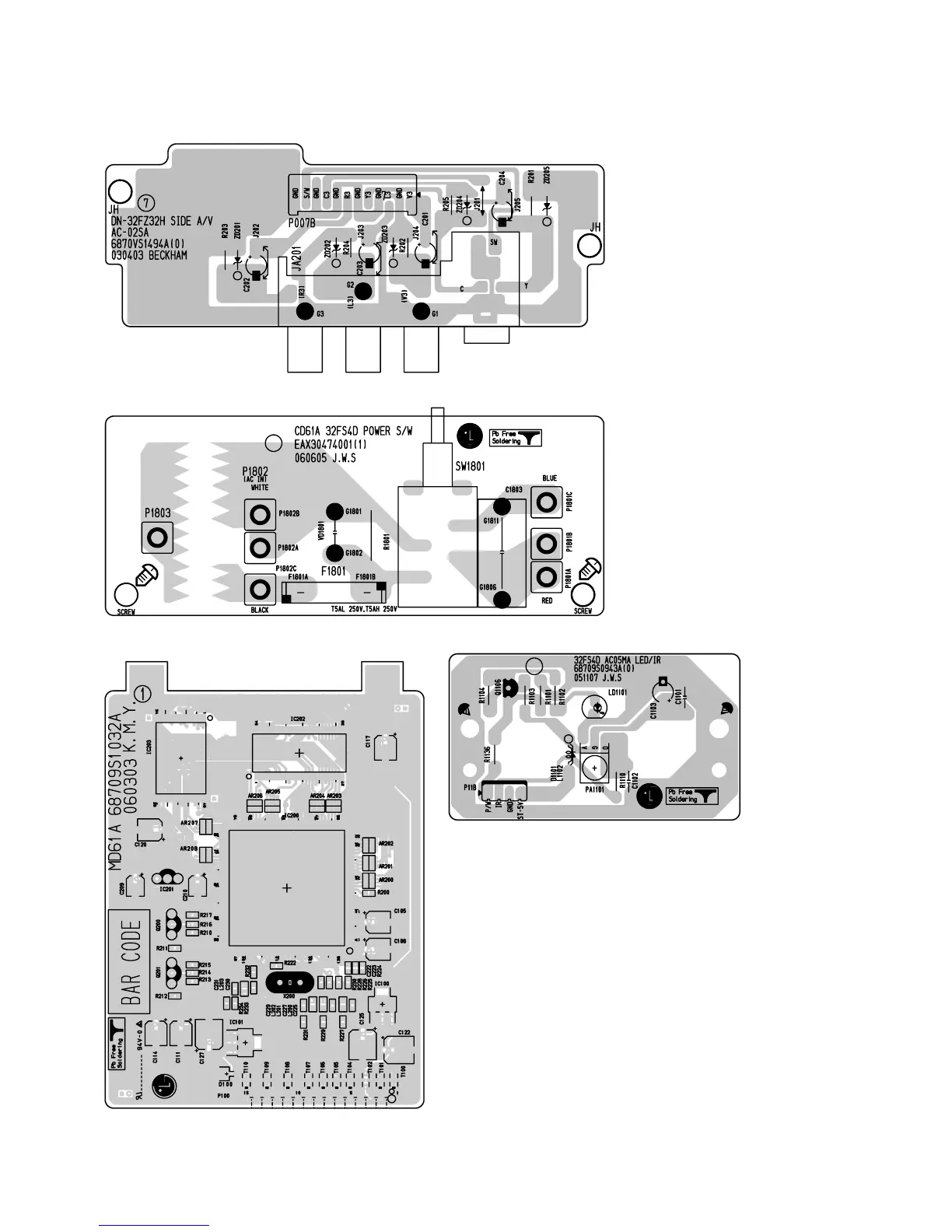 LG 32FS4D - Side-A;V, Power, Teletext, LED;Pre-Amp PCB Layouts